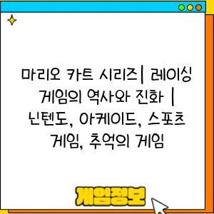 - 마리오 카트 시리즈는 다양한 플랫폼에 출시되면서 그래픽, 사운드, 게임 플레이 등 모든 면에서 발전해왔습니다.